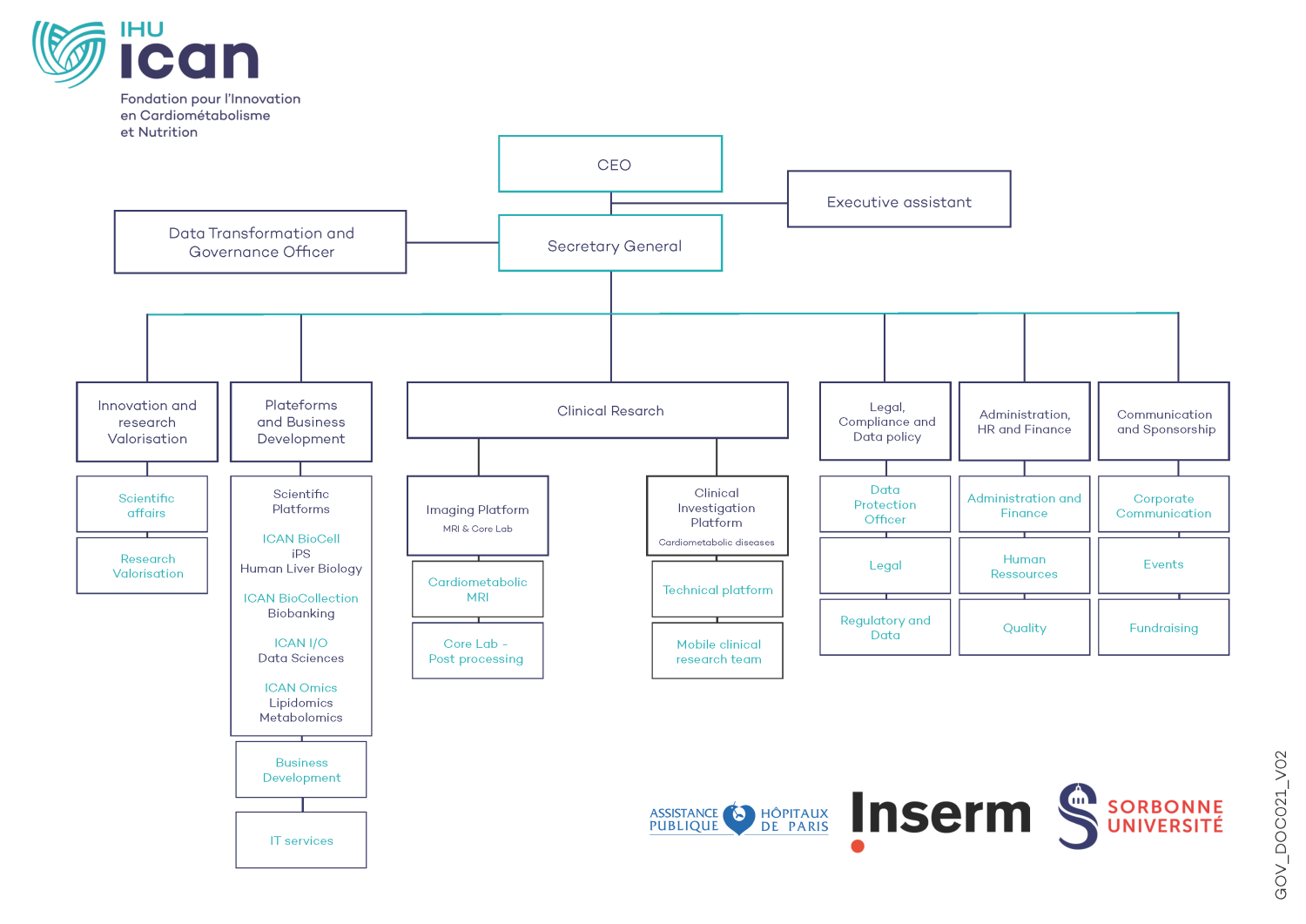 The CEO is appointed for 4 years by the Chairman of the Board of Directors, from candidates proposed by the Board. The Director General is responsible for the overall management of the IHU and is assisted by a Secretary General, who is responsible for the operational management of the Institute.